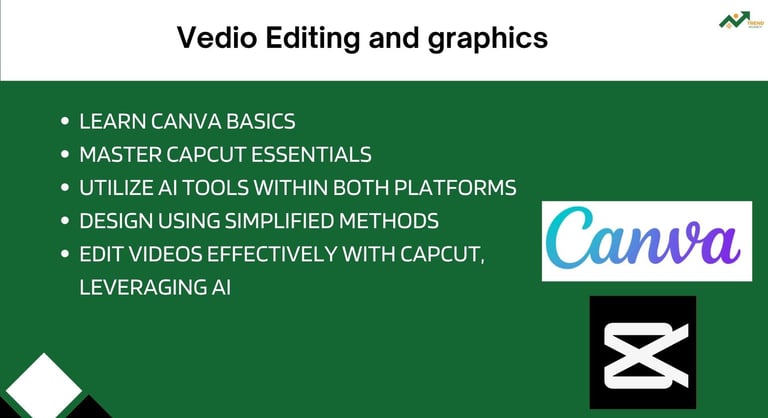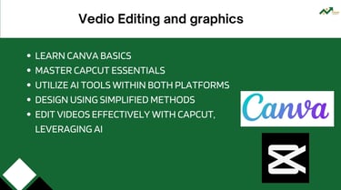 هتتعلم معانا أساسيات استخدام Canva و CapCut. كمان هنوريك ازاي تستخدم أدوات الـ AI اللي موجودة في البرامج دي عشان تقدر تصمم وتعدّل على الفيديوهات بأبسط وأسهل الطرق. يعني هتطلع محترف في التصميم وتعديل الفيديو، وكل ده باستخدام الـ AI